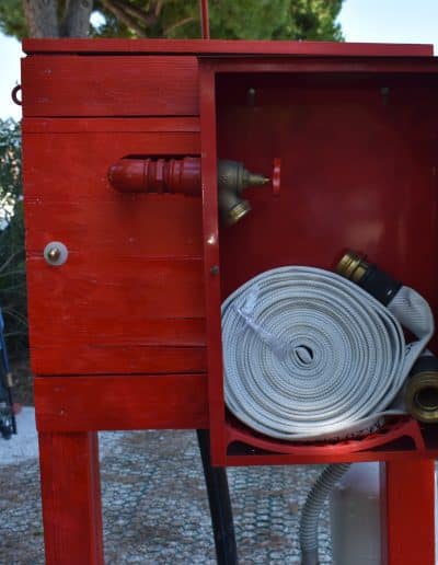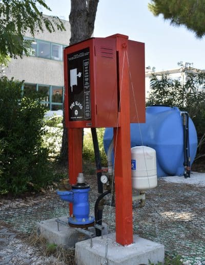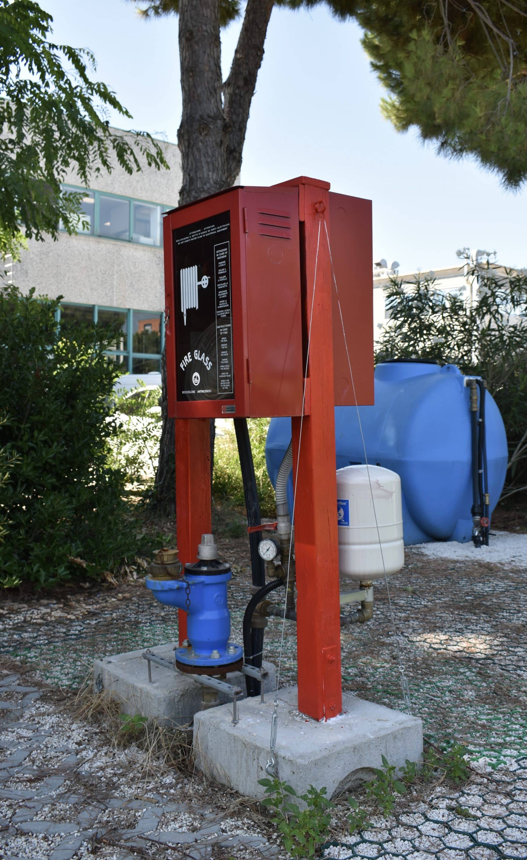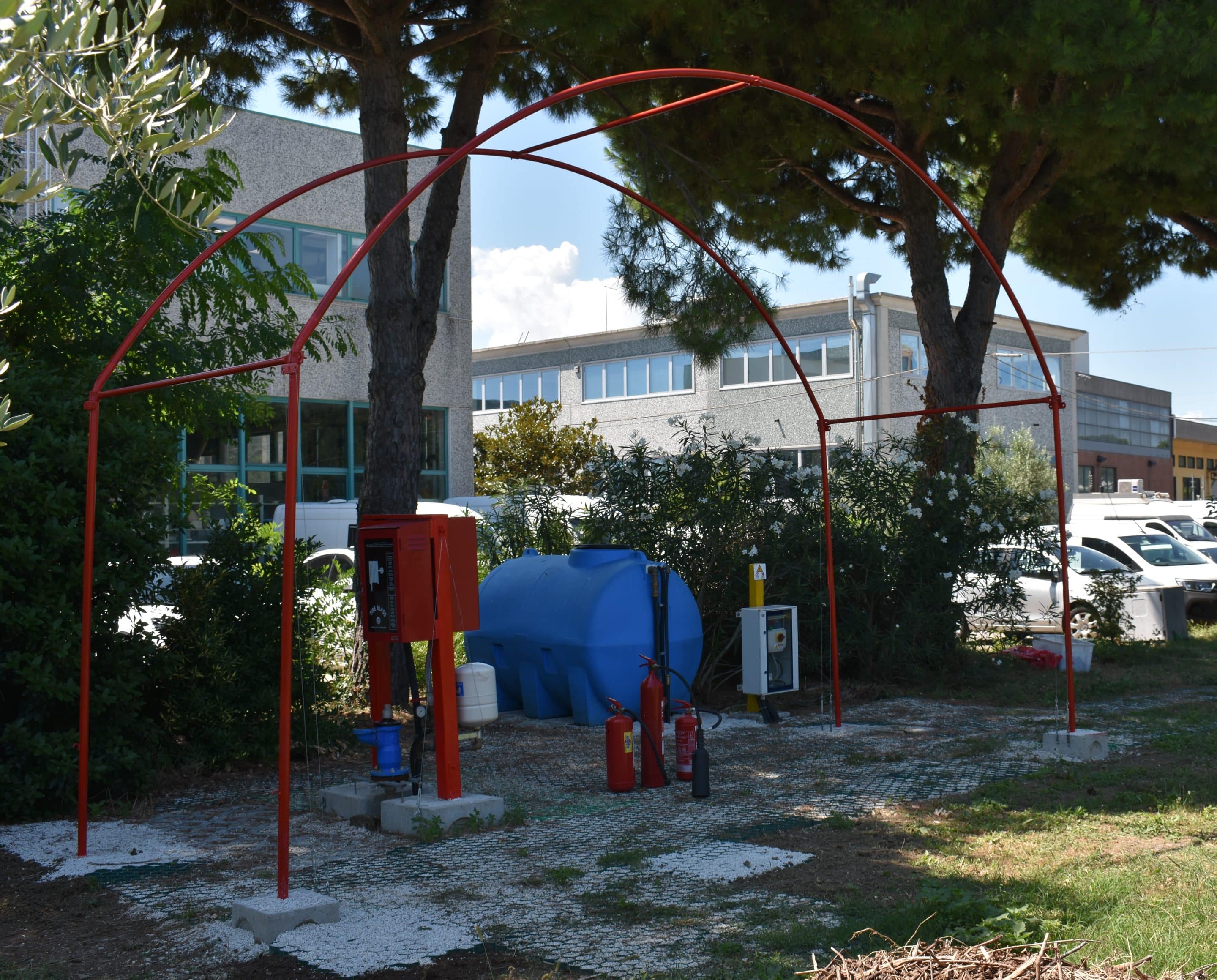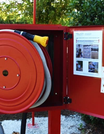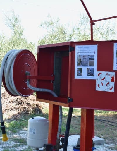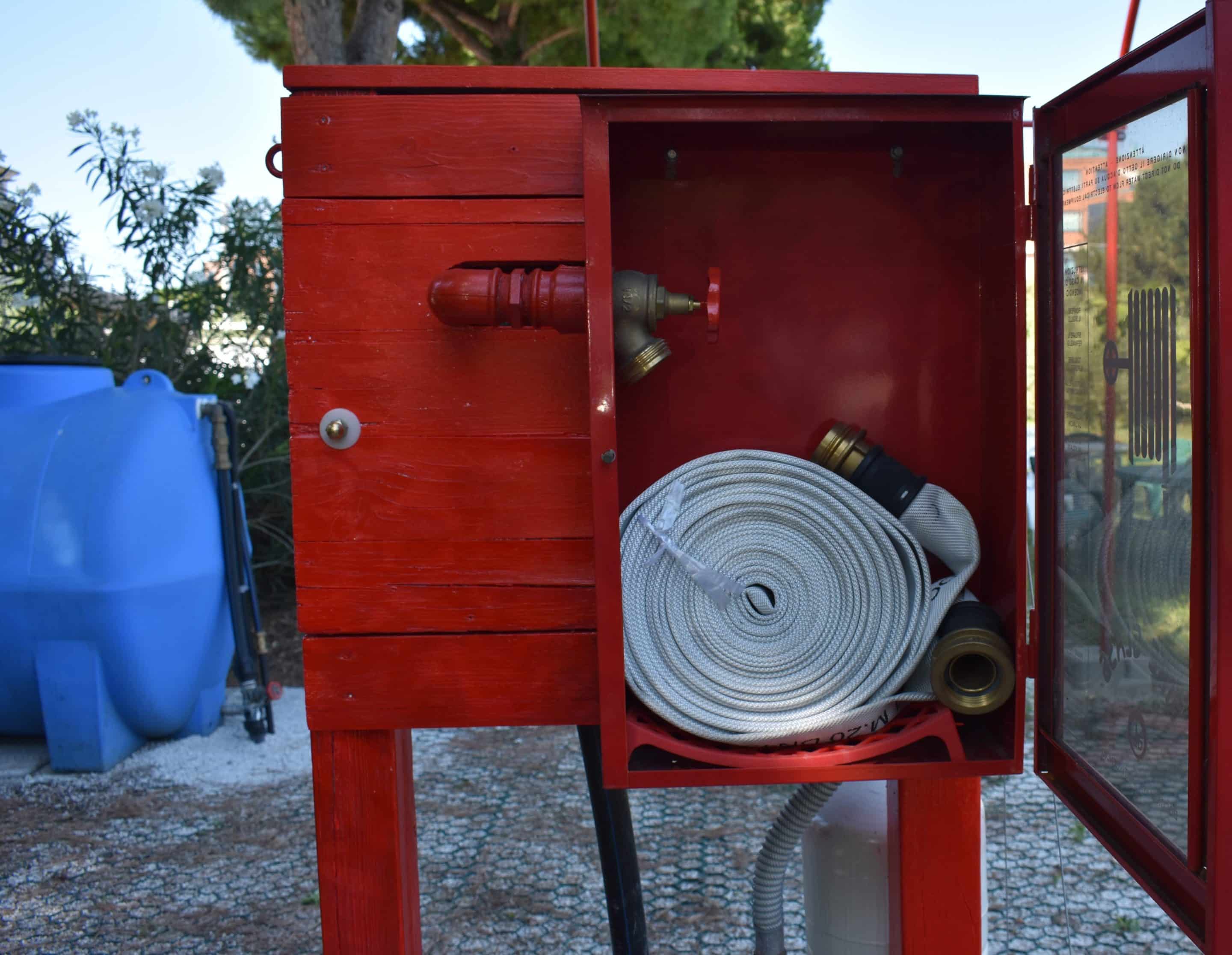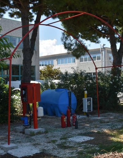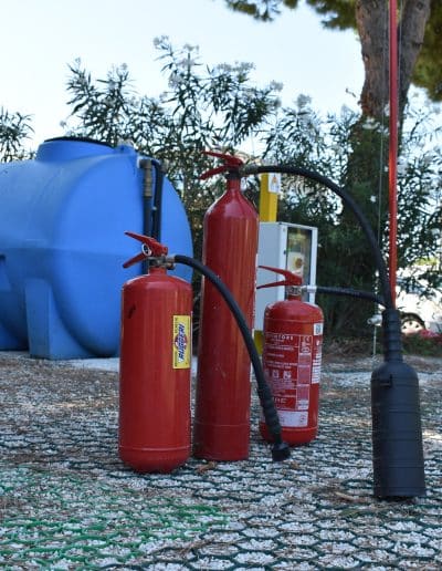 Il campo è dotato delle seguenti strutture ed attrezzature: idranti sottosuolo, manichette, naspo antincendio, vasca per la simulazione dello spegnimento di incendi, estintori a CO₂, estintori a polvere ed estintori ad acqua.